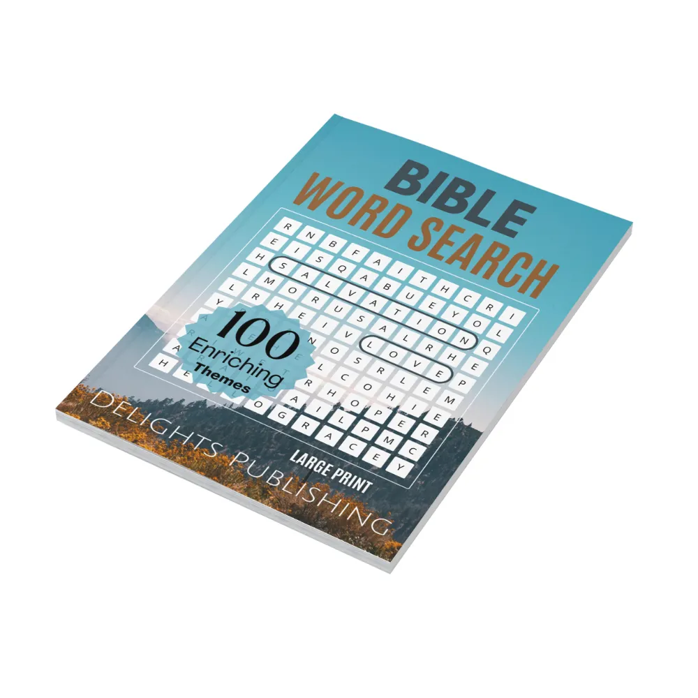 Standing paperback bible word search bookLarge Print Bible Word Search: 100 Enriching Themes with Bible Verses
